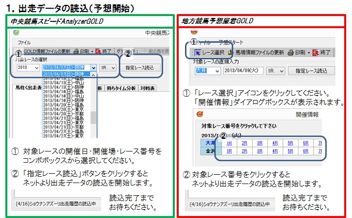 「地方競馬予想屋君GOLD」「中央競馬スピードAnalyzerGOLD」共通のオンライマニュアルです。