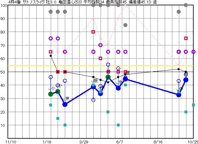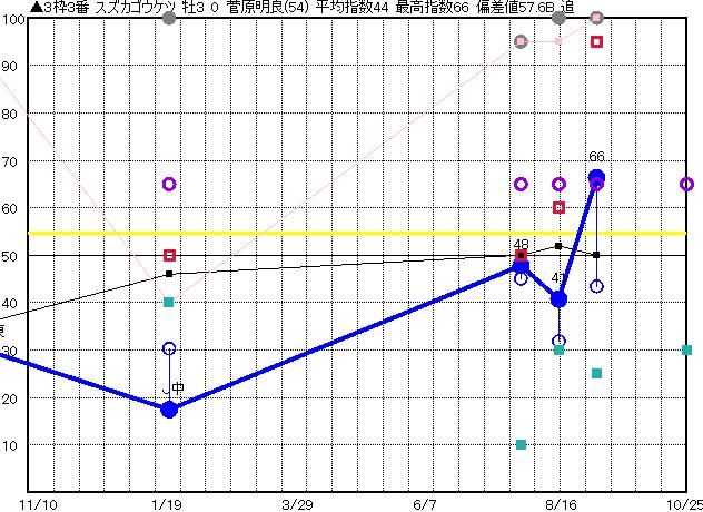 | 8枠10番 | ○ | 予想 56 平均 44 |