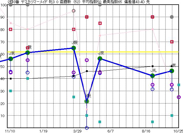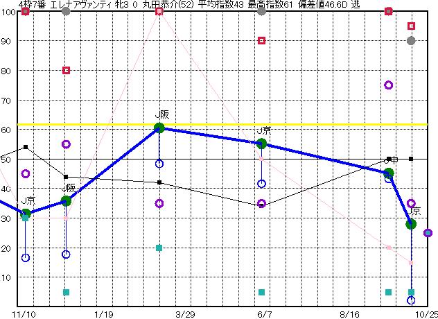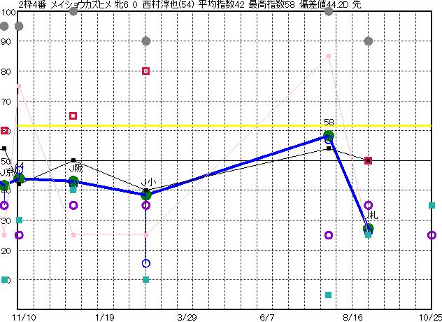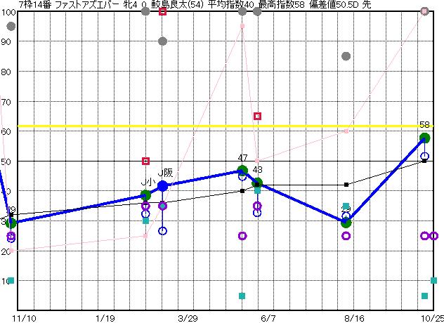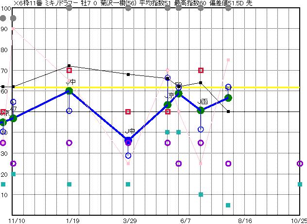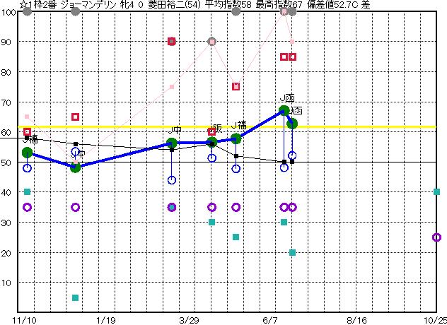 | 1枠2番 | ☆ | 予想 51 平均 58 |