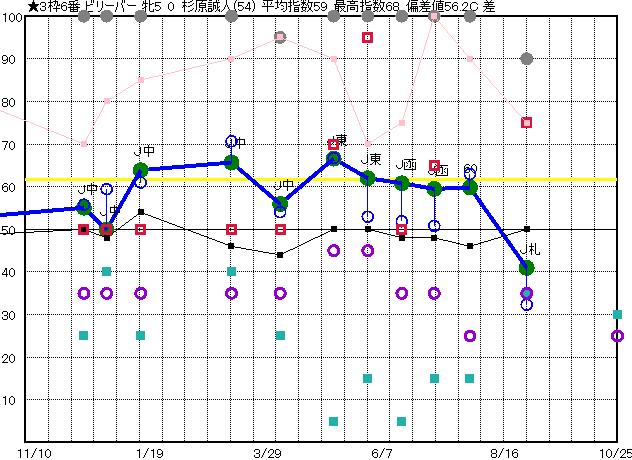 | 3枠6番 | ★ | 予想 53 平均 59 |