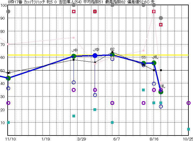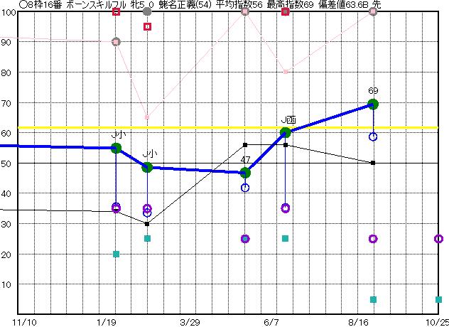 | 8枠16番 | ○ | 予想 58 平均 56 |
