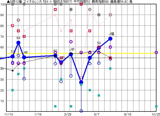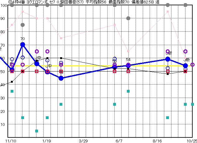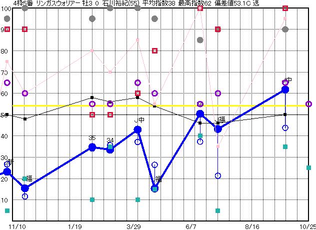 | 4枠4番 | ◎ | 予想 53 平均 56 |