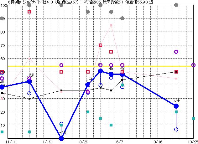| 6枠9番 | 予想 46 平均 35 |