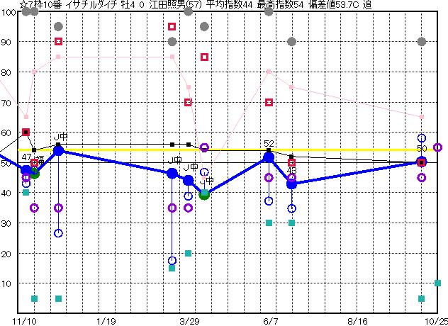 | 7枠10番 | ☆ | 予想 44 平均 44 |