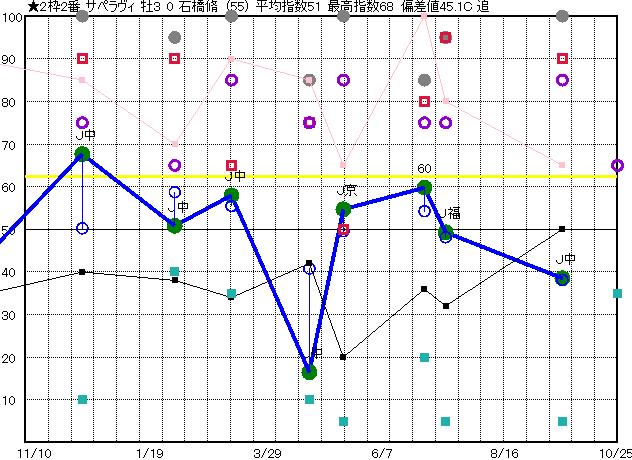 | 2枠2番 | ★ | 予想 49 平均 51 |
