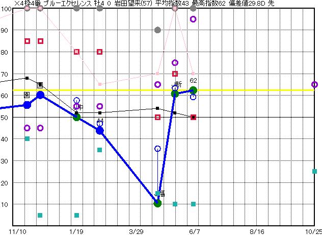 | 4枠4番 | × | 予想 37 平均 43 |