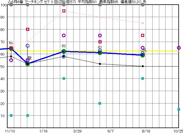 | 6枠6番 | △ | 予想 52 平均 61 |