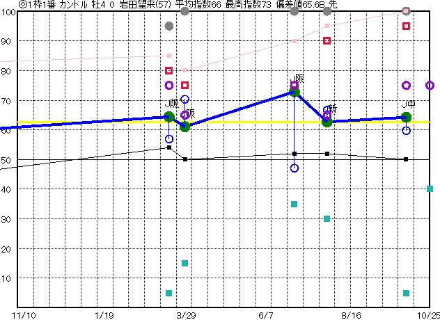 | 1枠1番 | ◎ | 予想 67 平均 66 |