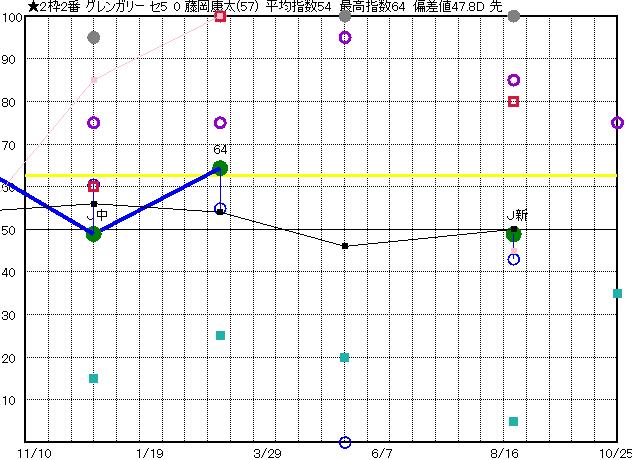 | 2枠2番 | ★ | 予想 47 平均 54 |