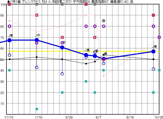| 1枠1番 | ★ | 予想 51 平均 59 |