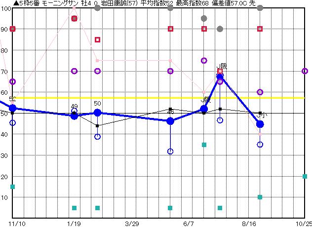 | 8枠10番 | △ | 予想 56 平均 49 |