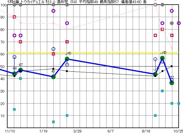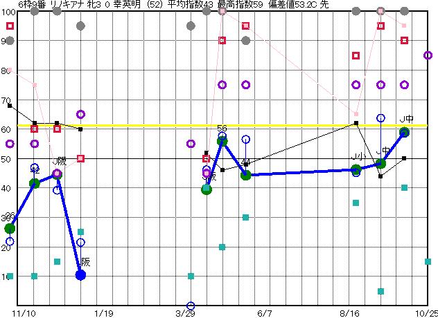 | 6枠9番 | 予想 54 平均 43 |