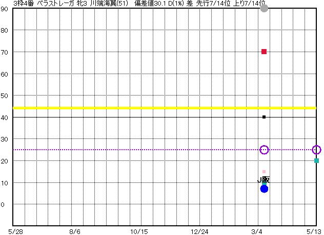 | 4 | ベラストレーガ グラフ表示 | 川端海(51) 牝3 差 | -1 7 | J阪神 1200 23/03/11 1R 7上り7 16/16 | | | | | |