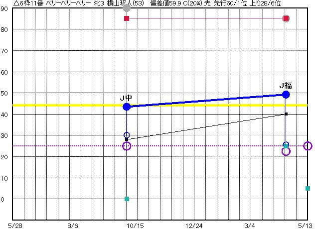 | 11 | ベリーベリーベリー グラフ表示 | 横山琉(53) 牝3 先 | △ | 40 46 | J福島 1150 23/04/16 1R 49上り26 2/16 | J中山 1200 22/10/01 6R 43上り30 2/16 | | | |