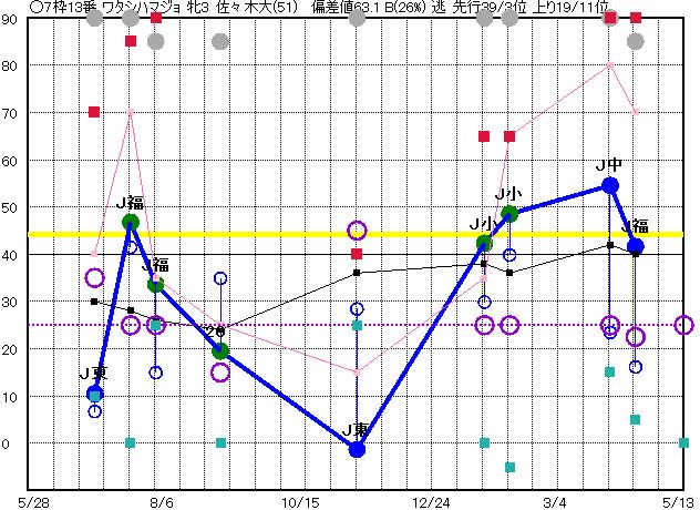 | 7 | ジャズピアニスト グラフ表示 | 鷲頭虎(51) 牝3 差 | 25 25 | J福島 1150 23/04/23 1R 29上り21 5/16 | J阪神 1200 23/03/05 2R 28上り18 13/16 | J福島 1150 22/11/12 1R 22上り21 15/16 | J中京 芝1200 22/06/12 5R 16上り34 6/9 | | |