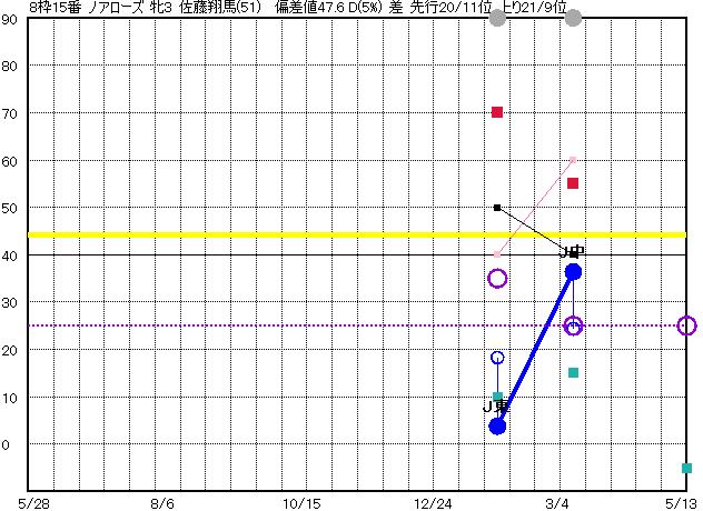 | 15 | ノアローズ グラフ表示 | 佐藤翔(51) 牝3 差 | 23 22 | J中山 1200 23/03/11 2R 36上り24 7/16 | J東京 1400 23/01/28 2R 4上り18 11/16 | | | |