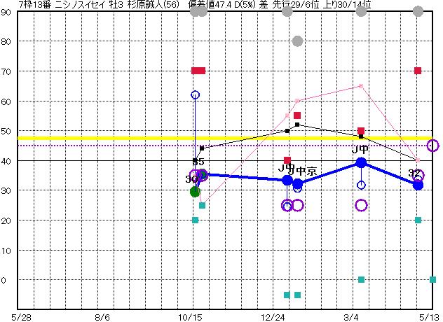 | 13 | ニシノスイセイ グラフ表示 | 杉原誠(56) 牡3 差 | 31 35 | J東京 1400 23/04/30 2R 32上り34 11/16 | J中山 1200 23/03/11 2R 39上り32 6/16 | J中京 1200 23/01/14 1R 32上り31 7/16 | J中山 1200 23/01/05 1R 33上り25 8/16 | J東京 芝1400 22/10/22 4R 35上り35 14/14 | |