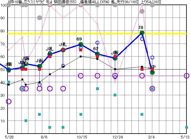| 18 | グラスミヤラビ グラフ表示 | 柴田善(55) 牝4 差 | 68 60 | J中山 芝1200 23/03/04 11R 48上り59 14/16 | J東京 芝1400 23/02/11 10R 78上り74 1/15 | J阪神 芝1400 22/12/18 10R 59上り44 13/15 | J東京 芝1400 22/11/12 10R 62上り71 4/16 | J東京 芝1400 22/10/09 9R 69上り67 1/11 |