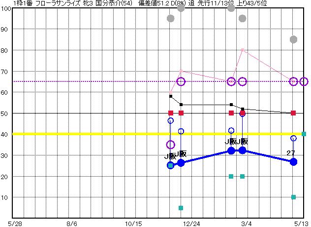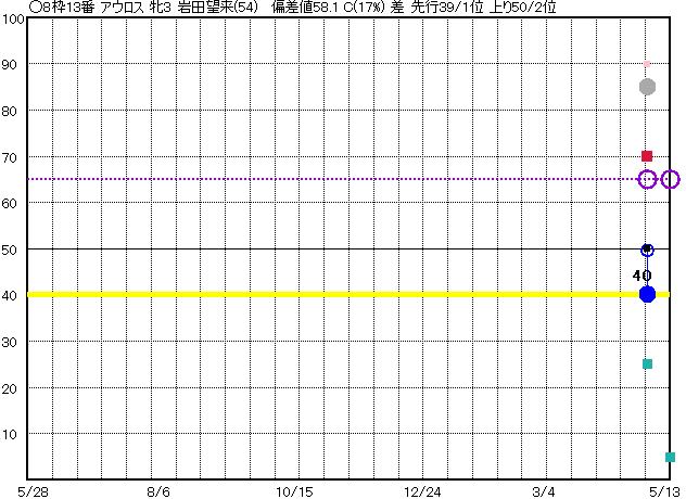 | 13 | アウロス グラフ表示 | 岩田望(54) 牝3 差 | ○ | 39 42 | J京都 1800 23/04/30 1R 40上り50 3/16 | | | | |
