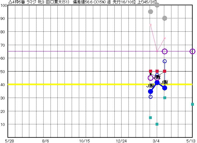| 5 | ラマジ グラフ表示 | 田口貫(51) 牝3 追 | △ | 38 40 | J阪神 1800 23/03/19 1R 37上り58 6/10 | J阪神 1400 23/03/04 1R 41上り47 8/13 | J阪神 1400 23/02/19 4R 35上り31 4/16 | | |