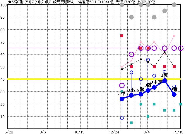 | 7 | アルマケルブ グラフ表示 | 鮫島克(54) 牝3 追 | ★ | 34 32 | J新潟 1800 23/04/29 2R 28上り34 6/14 | J阪神 1800 23/04/09 1R 39上り46 9/16 | J中京 1800 23/03/18 1R 33上り43 7/13 | J阪神 1800 23/03/05 1R 31上り56 8/15 | J阪神 1800 23/02/18 1R 28上り40 7/12 |