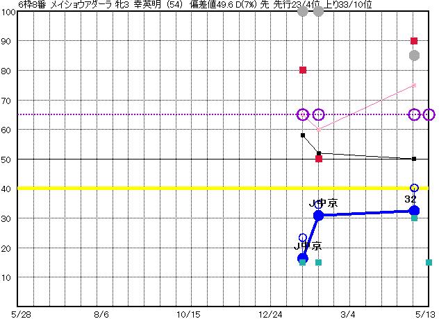 | 8 | メイショウアダーラ グラフ表示 | 幸英明(54) 牝3 先 | 30 28 | J京都 1800 23/04/30 1R 32上り40 6/16 | J中京 1800 23/02/04 1R 31上り35 9/15 | J中京 1800 23/01/21 3R 16上り23 8/16 | | | |