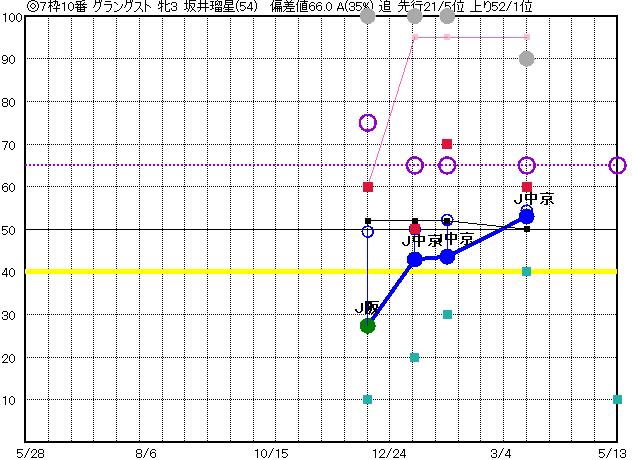 | 10 | グラングスト グラフ表示 | 坂井瑠(54) 牝3 追 | ◎ | 46 44 | J中京 1800 23/03/18 1R 53上り54 2/13 | J中京 1800 23/01/28 1R 44上り52 2/11 | J中京 1800 23/01/08 1R 43上り50 2/15 | J阪神 芝2000 22/12/10 5R 27上り49 9/9 | |