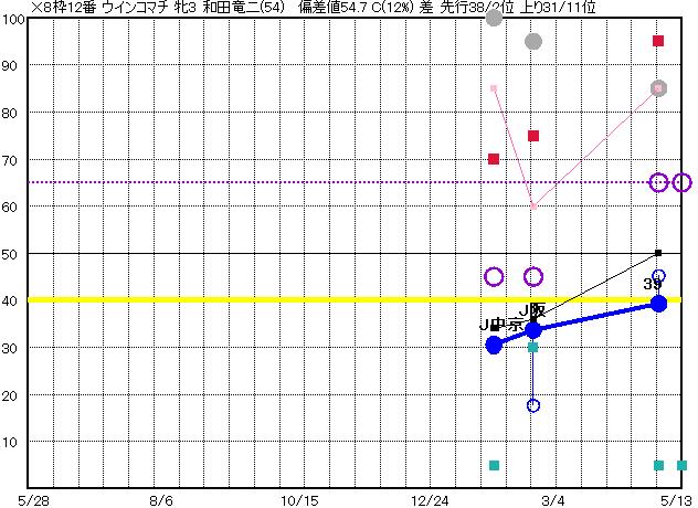 | 12 | ウインコマチ グラフ表示 | 和田竜(54) 牝3 差 | × | 35 35 | J京都 1800 23/04/30 1R 39上り45 4/16 | J阪神 1400 23/02/19 2R 34上り18 9/16 | J中京 1400 23/01/28 4R 31上り30 4/16 | | |