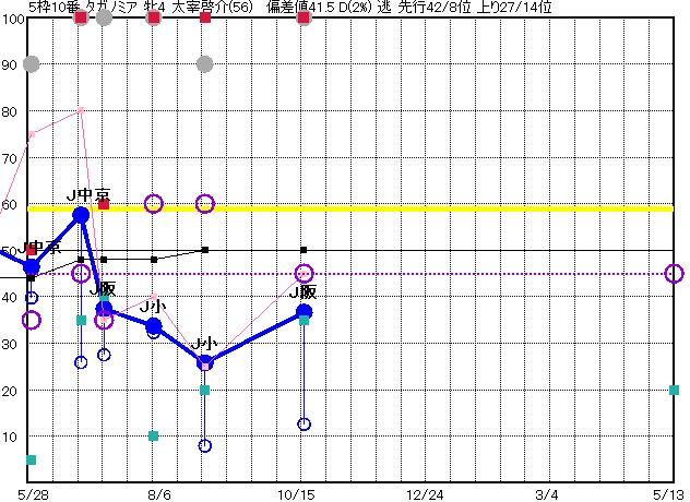 | 14 | スピリットワールド グラフ表示 | 武豊 (58) 牡4 | J阪神 芝1400 21/11/27 4R 57上り52 1/18 | J阪神 芝1600 21/11/06 3R 65上り63 2/17 | J阪神 芝1600 21/10/17 5R 48上り56 5/16 | | | ||