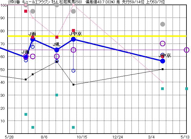 | 3 | キュールエフウジン グラフ表示 | 松若風(58) 牡4 差 | 60 66 | J中京 1900 23/03/25 11R 56上り61 13/16 | J中京 1800 22/09/24 12R 73上り49 1/13 | J札幌 1700 22/08/21 10R 65上り56 6/14 | J函館 1700 22/07/03 10R 73上り67 3/10 | J函館 1700 22/06/19 8R 59上り57 1/12 | |