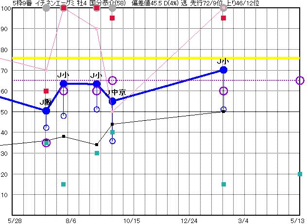 | 9 | イチネンエーグミ グラフ表示 | 国分恭(58) 牡4 逃 | 62 60 | J小倉 1700 23/02/05 10R 70上り51 1/16 | J中京 1800 22/09/17 10R 55上り36 11/15 | J小倉 1700 22/08/28 10R 63上り51 3/16 | J小倉 1700 22/07/17 12R 63上り48 1/15 | J阪神 1200 22/06/25 7R 50上り42 7/16 | |