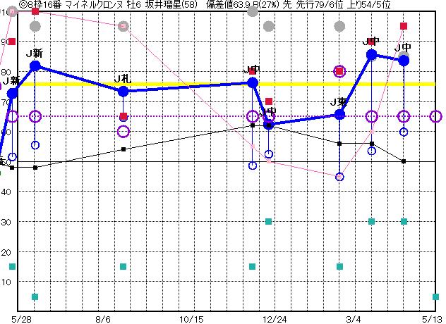 | 16 | マイネルクロンヌ グラフ表示 | 坂井瑠(58) 牡6 先 | ◎ | 80 76 | J中山 1800 23/04/15 10R 84上り60 2/15 | J中山 1800 23/03/18 10R 86上り54 9/16 | J東京 2100 23/02/18 10R 66上り45 12/16 | J中山 1800 22/12/18 10R 62上り52 11/13 | J中山 1800 22/12/04 10R 76上り49 10/16 |