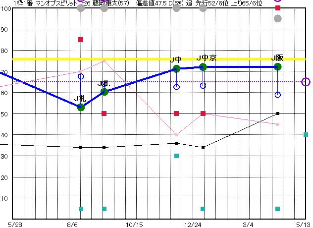 | 1 | マンオブスピリット グラフ表示 | 藤岡康(57) セ6 追 | 63 67 | J阪神 芝2600 23/04/08 10R 72上り59 12/13 | J中京 芝3000 23/01/05 10R 72上り63 11/16 | J中山 芝3600 22/12/03 11R 71上り63 13/14 | J札幌 芝2600 22/09/04 11R 60上り64 6/11 | J札幌 芝2600 22/08/06 11R 53上り68 7/10 | |