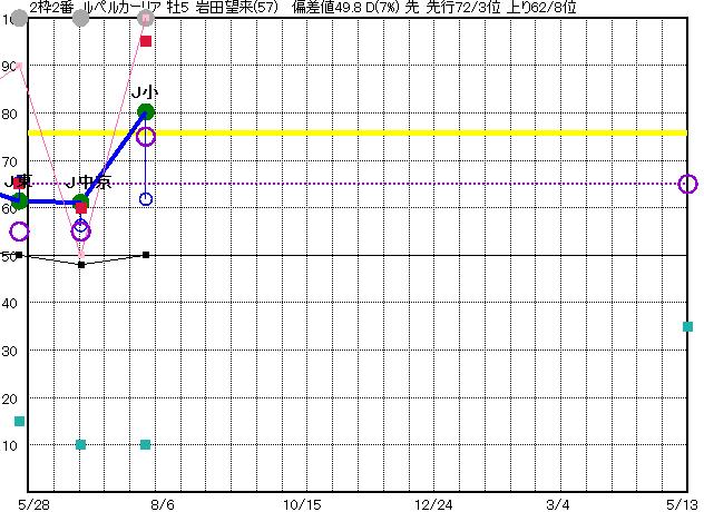 | 2 | ルペルカーリア グラフ表示 | 岩田望(57) 牡5 先 | 65 71 | J小倉 芝2000 22/07/17 11R 80上り62 1/12 | J中京 芝1600 22/06/11 11R 61上り56 11/15 | J東京 芝1600 22/05/08 9R 61上り65 3/16 | J阪神 芝1800 22/03/12 10R 69上り65 6/16 | J中山 芝2200 22/01/10 10R 59上り63 11/15 | |