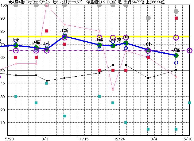 | 4 | フォワードアゲン グラフ表示 | 北村友(57) セ6 追 | ★ | 66 69 | J福島 芝2000 23/04/16 11R 61上り56 12/14 | J小倉 芝1800 23/02/19 11R 66上り60 9/16 | J中山 芝2000 23/01/05 11R 71上り67 8/17 | J中京 芝2000 22/12/10 11R 69上り72 14/18 | J福島 芝2000 22/11/13 11R 69上り66 5/16 |