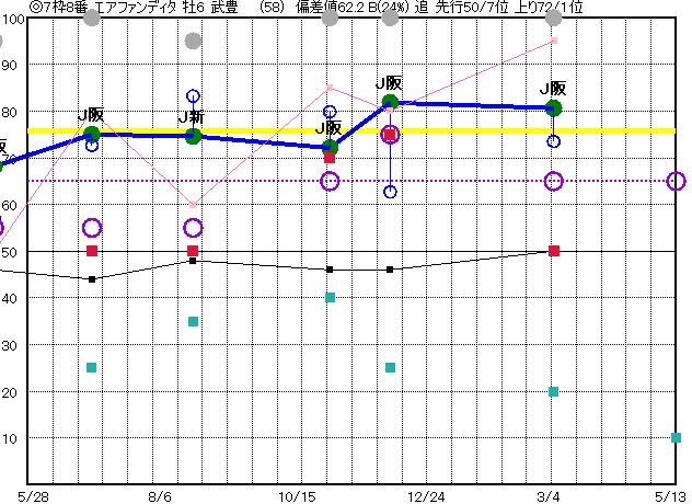 | 8 | エアファンディタ グラフ表示 | 武豊 (58) 牡6 追 | ◎ | 77 78 | J阪神 芝1800 23/03/05 11R 81上り74 2/16 | J阪神 芝2000 22/12/03 11R 82上り63 5/14 | J阪神 芝1800 22/10/30 11R 72上り80 4/15 | J新潟 芝1600 22/08/14 11R 75上り83 9/14 | J阪神 芝1600 22/06/18 11R 75上り73 5/16 |